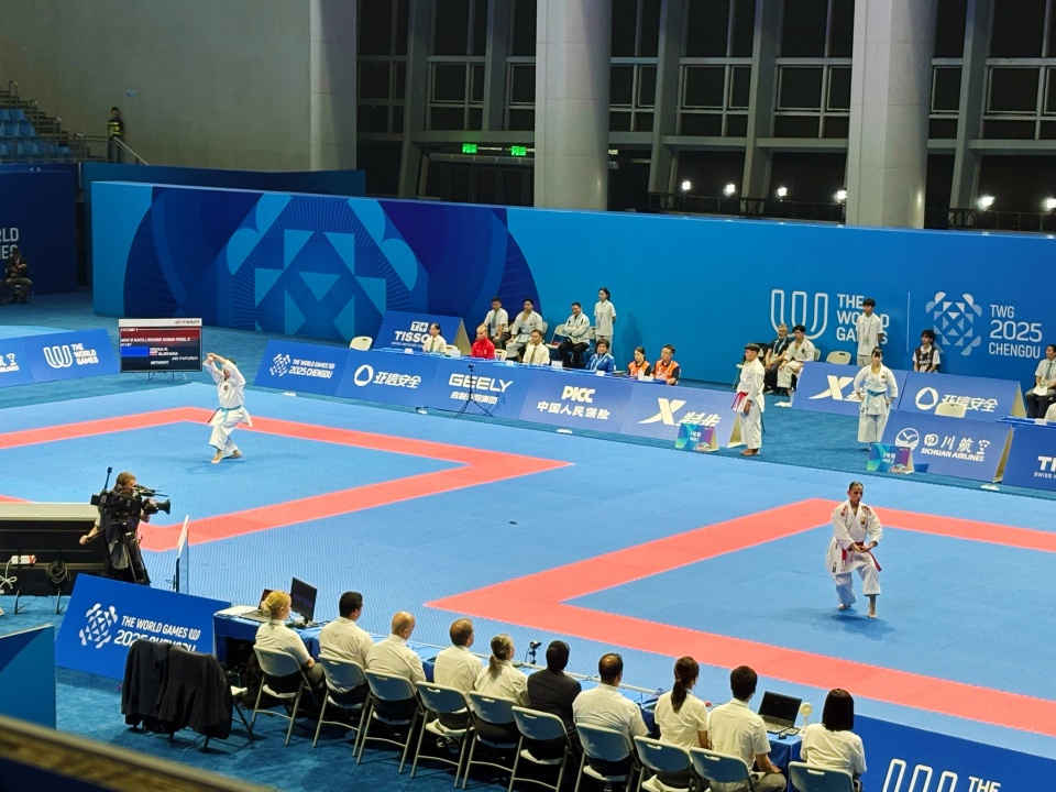 8月8日上午10点,成都世运会空手道项目在简阳文体中心体育馆进行,记者了解到,这也是成都世运会简阳赛区的首场比赛。