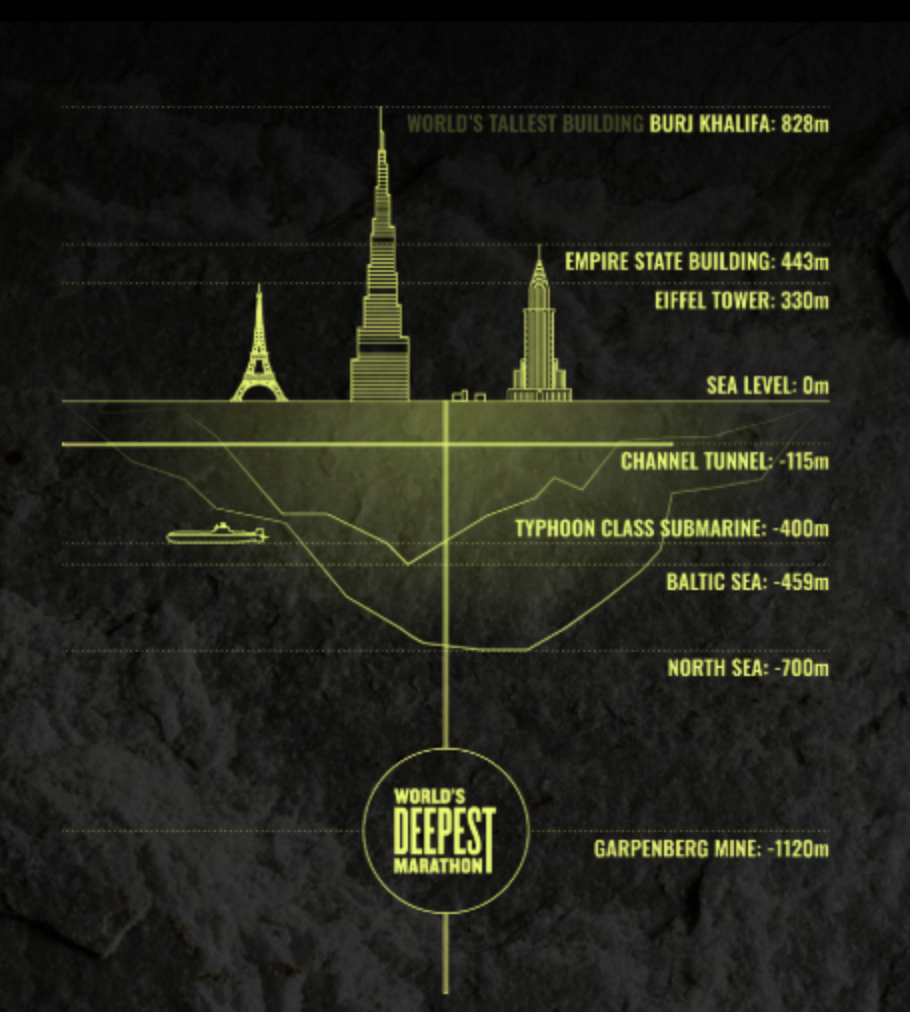 此外,赛事组织者希望通过这场比赛创造两项吉尼斯世界纪录:一项是世界上埋藏最深的马拉松,另一项是赛事组织方面的纪录。